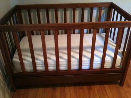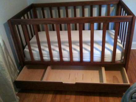 Brazilian Cherry Crib with full bottom soft close drawer |